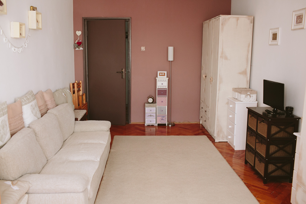 Deși amenajare propriu-zisă nu a durat mai mult de o lună, cel mai dificil moment din renovare a fost spargerea pereților de la balcon, mărirea livingului și crearea unui colțișor special pentru copil. Întreaga amenajare, cu tot cu piesele de mobilier, nu a depășit suma de 15.000 de lei. Majoritatea accesoriilor și a mobilierului au fost achiziționată la JYSK sau de pe Emag.